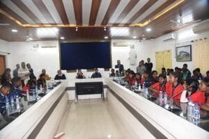 अंबिकापुर 27 जनवरी 2024/ एकलव्य आदर्श आवासीय विद्यालय पेटला के छात्र-छात्राओं ने शनिवार को कलेक्ट्रेट सभाकक्ष में पहुंचकर कलेक्टर श्री विलास भोस्कर के समक्ष अपनी समस्याएं एवं मांगें रखी।