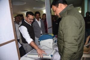 अम्बिकापुर 06 जनवरी 2024/ आगामी लोकसभा चुनाव 2024 के मद्देनजर जिला प्रशासन ने मतदाताओं के बीच मतदान के डिजिटल सिस्टम के बारे में जागरूकता लाने के लिए कलेक्टोरेट कंपोजिट बिल्डिंग में ईवीएम डेमोंस्ट्रेशन सेंटर शुरू किया है। जिले के नवनियुक्त कलेक्टर एवं जिला निर्वाचन अधिकारी श्री विलास भोस्कर संदीपन ने शनिवार को कंपोजिट बिल्डिंग में ईवीएम प्रदर्शन केन्द्र का फीता काटकर शुभारंभ किया। इस दौरान उन्होंने ने ईवीएम मशीन में मॉक पोल भी किया। वहीं अपर कलेक्टर एवं उप जिला निर्वाचन अधिकारी श्री सुनील नायक, अम्बिकापुर नगर निगम आयुक्त श्री अभिषेक कुमार और जिला पंचायत मुख्य कार्यपालन अधिकारी श्री नूतन कंवर ने भी ईवीएम मशीन में मॉक पोल किया।