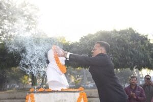 अंबिकापुर 26 जनवरी 2024/ 26 जनवरी 2024। गणतंत्र दिवस के अवसर पर कलेक्ट्रेट कार्यालय परिसर में कलेक्टर श्री विलास भोस्कर ने राष्ट्रीय ध्वज फहराया। इसके पूर्व उन्होंने परिसर में स्थापित राष्ट्रपिता महात्मा गांधी की प्रतिमा पर पुष्प माला अर्पण कर उन्हें नमन किया।