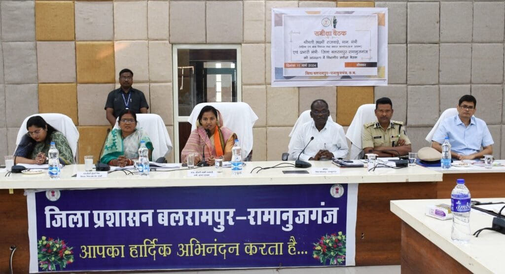 बैठक में सर्वप्रथम जिले के प्रभारी मंत्री श्रीमती लक्ष्मी राजवाड़े ने अधिकारियों से परिचय प्राप्त किया। तत्पश्चात उन्होंने अधिकारियों को संबोधित करते हुए कहा कि जिले के विकास के लिए आपसी समन्वय कर आगे बढ़ना है, उन्होंने कहा कि 2047 तक विकसित राष्ट्र बनाने का संकल्प लिया गया है इसी के तहत् विकास कार्यों में प्रगति लाते हुए बलरामपुर जिले को भी विकसित बनाना है। बैठक में उन्होंने महिला बाल विकास विभाग की समीक्षा करते हुए आंगनबाड़ी केन्द्रों की जानकारी ली साथ ही आंगनबाड़ी कार्यकर्ताओं के भर्ती प्रक्रिया के संबंध में भर्ती की प्रक्रिया को शीघ्र ही पूर्ण करने के निर्देश दिये।