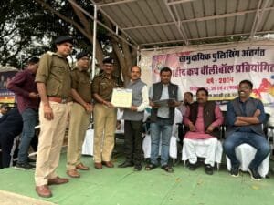 सामुदायिक पुलिसिंग के अंतर्गत रक्षित केंद्र बलरामपुर के परेड ग्राउंड में आयोजित जिला स्तरीय वॉलीबॉल टूर्नामेंट का समापन किया गया। समापन समारोह के अंतिम दिन शहीदों के परिजनो, मुख्य अतिथि भारतीय जनता पार्टी के जिला अध्यक्ष श्री ओम प्रकाश जायसवाल, वरिष्ठ पुलिस अधीक्षक बलरामपुर डॉक्टर लाल उमेद सिंह, महामंत्री भाजपा श्री दीनानाथ यादव, मंडल अध्यक्ष श्री दिलीप सोनी जनपद उपाध्यक्ष श्री भानु प्रताप दिक्षित, ब्लॉक कांग्रेस अध्यक्ष श्री रिपुजीत सिंह देव, जितेंद्र श्रीवास्तव की गरिमामई उपस्थिति में जिला स्तरीय वालीबाल टूर्नामेंट का समापन किया गया।