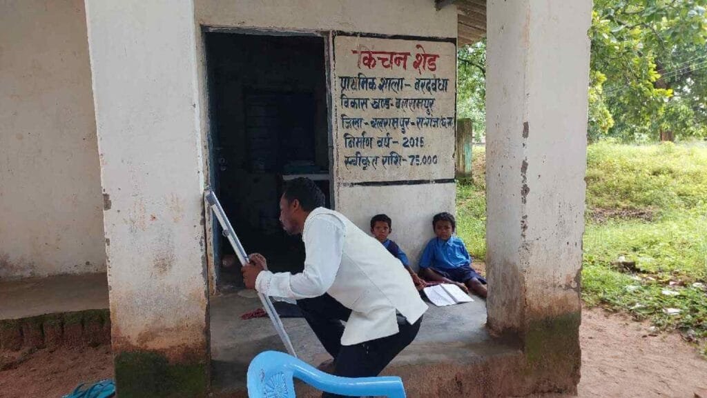 School in Verandah, School in kitchen shed in Balrampur छत्तीसगढ़ के बलरामपुर में स्कूलों की हालत दयनीय है. यहां किचन शेड के बरामदे में स्कूल चल रहा है. आपको जानकर हैरत होगी कि विश्रामनगर के आश्रित गांव बरदबंधा के इस स्कूल में सिर्फ 3 बच्चे पढ़ते हैं, जबकि उनको पढ़ाने के लिए 2 टीचर तैनात हैं.