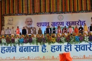 *बलरामपुर 13 दिसम्बर 2023/* प्रधानमंत्री श्री नरेन्द्र मोदी की गरिमामयी उपस्थिति में नवनियुक्त मुख्यमंत्री श्री विष्णुदेव साय को राज्यपाल श्री विश्वभूषण हरिचंदन ने पद एवं गोपनीयता की शपथ दिलाई। इस दौरान राज्यपाल श्री विश्वभूषण हरिचंदन ने उप मुख्यमंत्री के रूप में श्री अरुण साव व विजय शर्मा को भी शपथ दिलाई। राजधानी रायपुर के साइंस कॉलेज मैदान में आयोजित शपथ ग्रहण समारोह में देश के गृहमंत्री श्री अमित शाह सहित कई केन्द्रीय मंत्री तथा विभिन्न राज्यों के मुख्यमंत्री विशेष रूप से शामिल हुए। जिले में मुख्यमंत्री श्री विष्णुदेव साय के शपथ ग्रहण समारोह को देखने के लिए लाईव प्रसारण की सुविधा जिला मुख्यालय बलरामपुर के बाजारपारा स्थित ऑडिटोरियम भवन में किया गया था। जिसमें कलेक्टर श्री रिमिजियुस एक्का सहित जिला स्तरीय अधिकारीगण व आमनागरिकों ने शपथ ग्रहण का लाईव प्रसारण देखा। जिले के समस्त 468 ग्राम पंचायतों तथा 05 नगरीय निकायों में शपथ ग्रहण समारोह का सीधा प्रसारण किया गया, जिसे लोगों ने उत्साह के साथ देखा। ऑडिटोरियम भवन में शपथ ग्रहण समारोह को देखने आये बलरामपुर के श्री रामपाल राम ने कहा कि श्री विष्णुदेव साय के मुख्यमंत्री बनने पर छत्तीसगढ़ के विकास की उम्मीद जगी है। साथ ही राज्य का तकदीर एवं तस्वीर बदलने का अभियान शुरू हो जाएगा। मुख्यमंत्री श्री विष्णुदेव साय के नेतृत्व में नई सरकार के गठन के साथ ही राज्य के 18 लाख गरीब परिवारों को प्रधानमंत्री आवास योजना का लाभ मिलेगा। साथ ही किसानों को समर्थन मूल्य पर धान खरीदी के दो साल का बोनस भी प्राप्त होगा। इसी प्रकार श्री विद्यासागर ने कहा कि नई सरकार के गठन के पश्चात् छत्तीसगढ़ के उज्जवल भविष्य को लेकर हम पूरी तरह आशान्वित हैं। इसी तरह जिले के आमनागरिकों भी हर्ष के साथ अपनी प्रतिक्रिया देते हुए कहा कि श्री विष्णुदेव साय के नेतृत्व में छत्तीसगढ़ राज्य सभी क्षेत्रों में निरन्तर प्रगति करते हुए विकास का नया कीर्तिमान रचेगा।