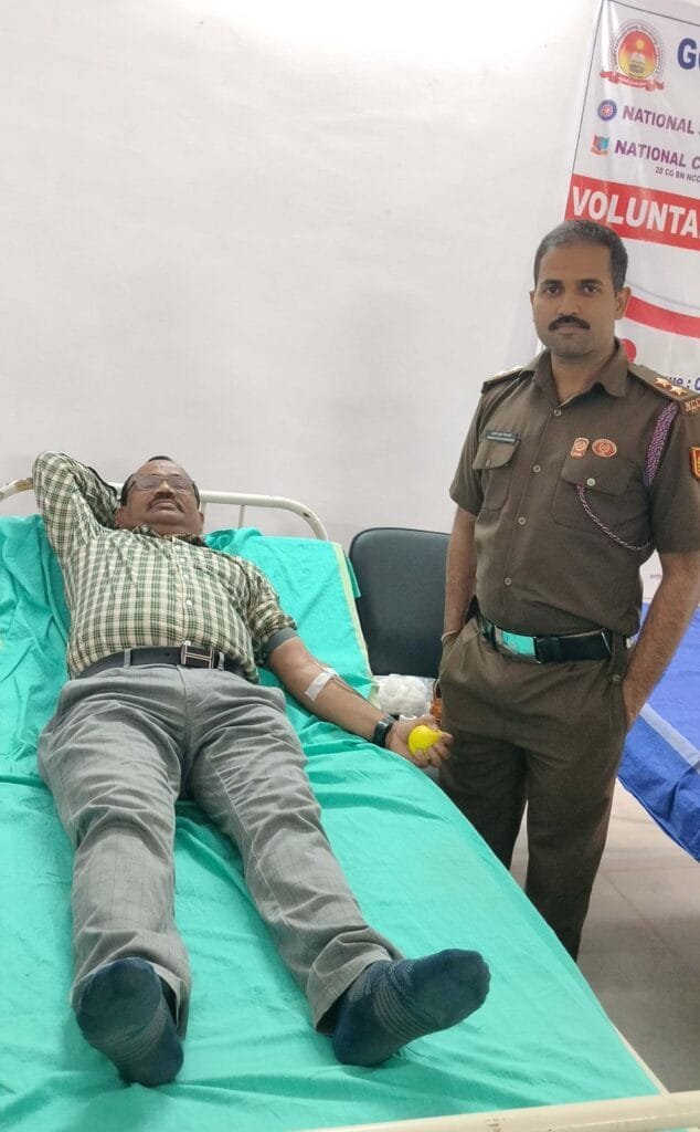 बलरामपुर 01 दिसम्बर 2023/ विश्व एड्स दिवस 01 दिसम्बर के अवसर पर शासकीय महाविद्यालय बलरामपुर के प्राचार्य श्री एन. के. देवांगन के कुशल नेतृत्व स्वास्थ्य विभाग व महाविद्यालय में संचालित एनएसएस इकाई, एनसीसी इकाई, रेड रिबन क्लब एवं रेडक्रॉस सोसायटी के संयुक्त तत्वाधान में रक्तदान एवं चिकित्सा जांच शिविर का आयोजन किया गया। शिविर में प्राचार्य श्री एन.के. देवांगन ने कहा कि किसी के जीवन को बचाने के लिए रक्तदान करना सबसे महत्वपूर्ण दान है, जो लोग स्वस्थ हैं और सक्षम हैं उन्हें रक्तदान अवश्य करना चाहिए। रक्तदान के फायदे और मानवता के लिए इसकी आवश्यकता के विषय में अधिक से अधिक लोग जागरूक हों और इसके लिए रक्तदान शिविरों का आयोजन होते रहना चाहिए। एनसीसी ऑफिसर लेफ्टिनेंट अश्विनी विष्वकर्मा ने कहा कि रक्तदान शिविर के माध्यम से हम प्रत्यक्ष-अप्रत्यक्ष रूप से जीवन को बचाने का काम करते हैं। महाविद्यालय के प्राचार्य, अधिकारीगण एवं छात्र/छात्राओं द्वारा स्वास्थ्य परीक्षण उपरांत 17 यूनिट रक्तदान किया गया। शिविर में महाविद्यालय के एनसीसी कैडेट रितेश प्रजापति एवं सुप्रिया सिंह के द्वारा अपने जन्मदिवस के उपलक्ष्य में सहर्ष रक्तदान किया गया। जिला चिकित्सालय बलरामपुर के चिकित्सा अधिकारी डॉ. मिथलेश, पैथोलॉजिस्ट डॉ. मोनिरा हसन एवं उनकी टीम द्वारा रक्तदान शिविर में महती योगदान रहा।