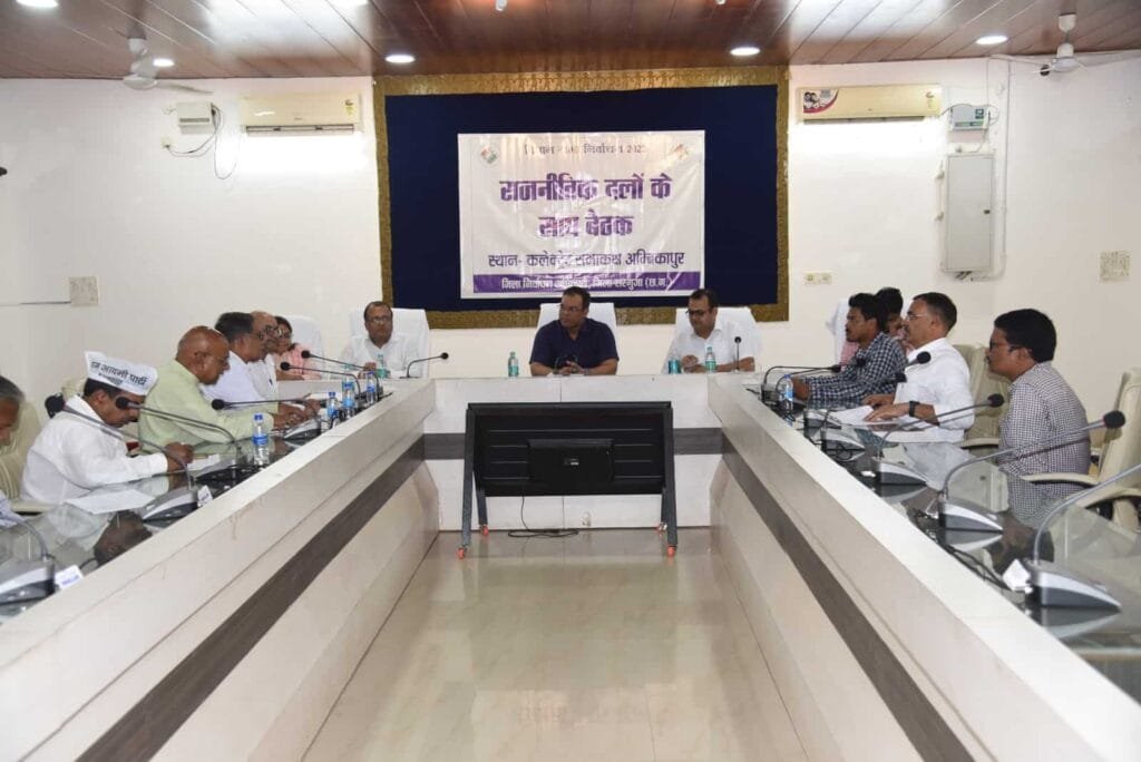 Ambikapur News : अम्बिकापुर 20 सितंबर 2023/ कलेक्टर एवं जिला निर्वाचन अधिकारी श्री कुंदन कुमार ने बुधवार को जिला कलेक्टरेट सभाकक्ष में विधानसभा निर्वाचन 2023 के सम्बंध में राजनैतिक दलों की बैठक ली। बैठक में उपस्थित राजनीतिक दल के जनप्रतिनिधियों को जिला अंतर्गत मतदान केंद्रों का भवन परिवर्तन, स्थल परिवर्तन, नाम परिवर्तन के संबंध में जानकारी दी गई और अंतिम संशोधन पर चर्चा की गई।