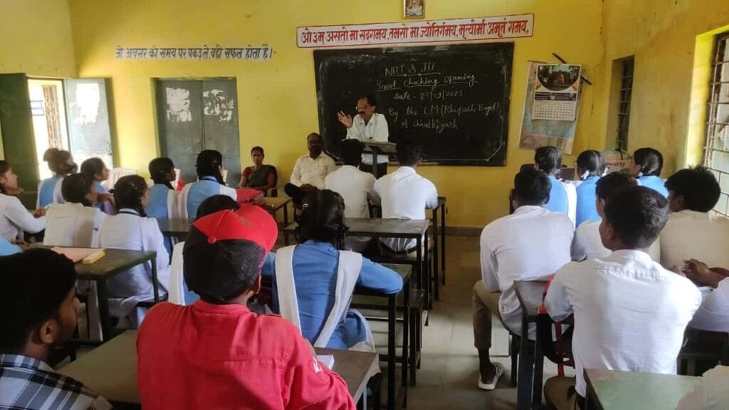 AmbikapurNews : अम्बिकापुर 25 सितंबर 2023/ मुख्यमंत्री श्री भूपेश बघेल के घोषणानुसार इंजीनियरिंग एवं मेडिकल में प्रवेश हेतु प्रतियोगी परीक्षाओं की तैयारी में युवा छात्र छात्राओं की मदद के लिए ऑनलाइन स्वामी आत्मानंद कोचिंग योजना का शुभारंभ विकासखण्ड अम्बिकापुर सहित सभी सातों विकासखण्डों में 25 सितंबर से किया गया। कलेक्टर श्री कुन्दन कुमार के मार्गदर्शन में शासकीय उच्चतर माध्यमिक विद्यालय, केदारपुर में जिला शिक्षा अधिकारी डॉ. संजय गुहे की उपस्थिति एवं प्राचार्य श्रीमती रूमि घोष की अध्यक्षता में योजना की शुरुआत की गई।