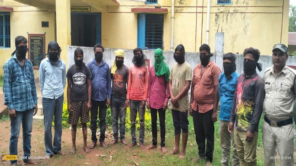 प्रतापपुर – हनुमान छाप सिक्का की मांग करते हुए एक ग्रामीण परिवार को बंधक बनाकर डकैती की घटना को अंजाम देने वाले 11 आरोपितों को रमकाेला पुलिस ने गिरफ्तार कर लिया है। रमकाेला निवासी चरकू चेरवा ने थाने में रिपोर्ट दर्ज कराई थी कि 16 जुलाई की देर रात एक व्यक्ति आम पेड़ के सहारे छप्पर में चढ़कर घर के आंगन में कूदकर दरवाजा खोल दिया और उसके बाद सात आदमी घर के अंदर प्रवेश किए। चार आदमी घर के बाहर मौजूद थे। इसके बाद बदमाशों ने प्रार्थी तथा उसके तीनों बच्चों को आंगन में लाकर मारपीट करते हुए मोबाइल छीन कर जान से मारने की धमकी देते हुए हनुमान छाप सिक्का देने की मांग की।
