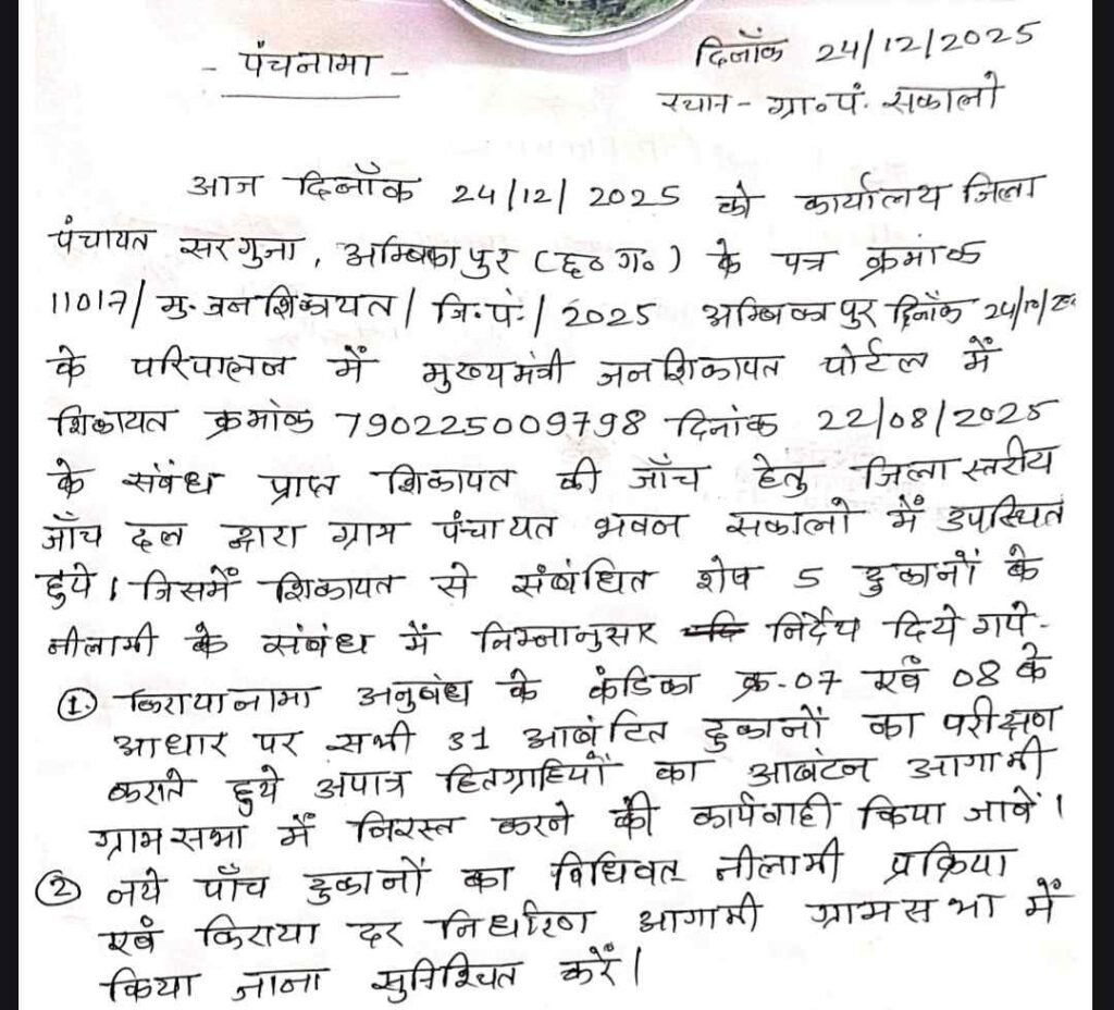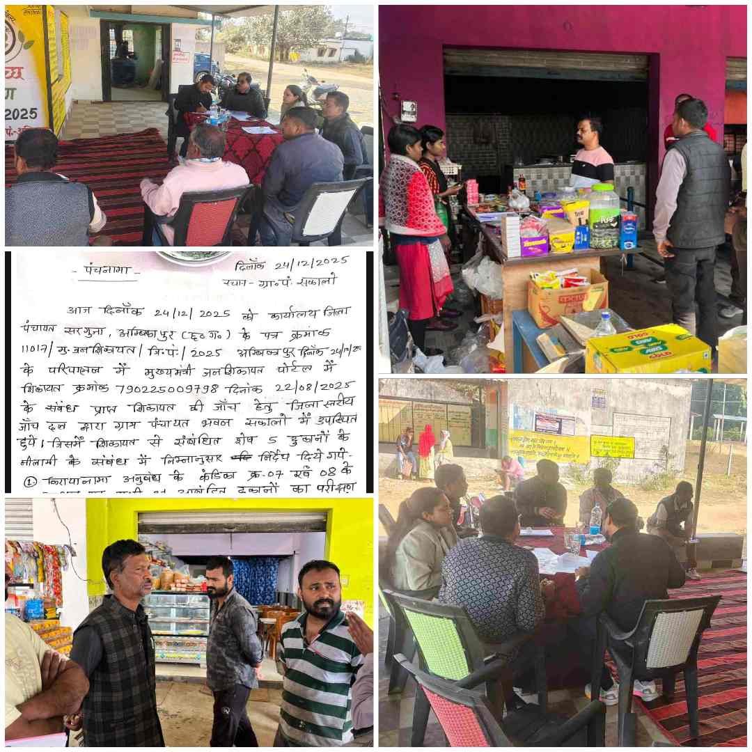 सकालो | ग्राम पंचायत सकालो में पंचायत दुकानों के संचालन को लेकर जिला पंचायत के निर्देशों के अनुपालन में पंचायत स्तर पर सघन निरीक्षण किया गया। यह निरीक्षण सरपंच, सचिव, उपसरपंच एवं ग्राम पंचायत सकालो के समस्त सदस्यों की उपस्थिति में संपन्न हुआ।
