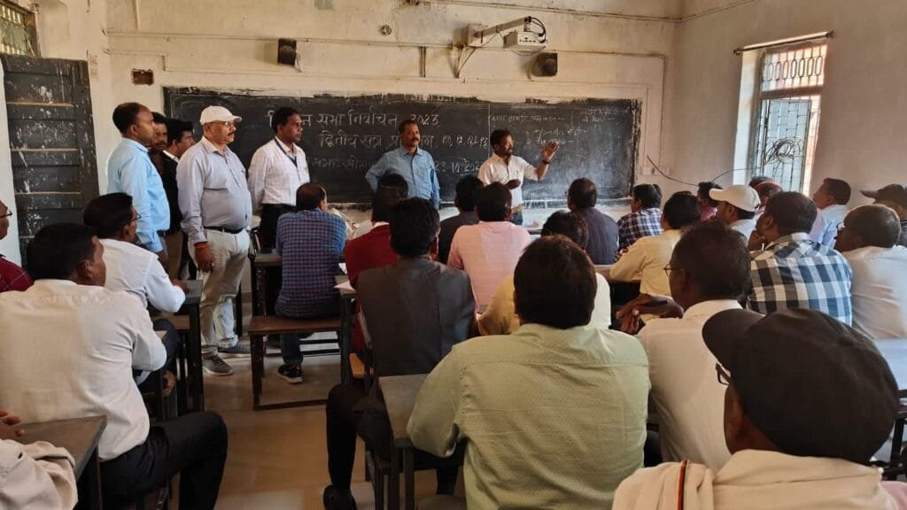 Election News : अम्बिकापुर 29 अक्टूबर 2023/ भारत निर्वाचन आयोग के निर्देशानुसार कलेक्टर एवं जिला निर्वाचन अधिकारी श्री कुंदन कुमार के मार्गदर्शन में विधानसभा निर्वाचन 2023 हेतु मतदान दलों के प्रथम चरण के प्रशिक्षण के पश्चात पीठासीन अधिकारियों तथा मतदान अधिकारियों का द्वितीय चरण का प्रशिक्षण शुक्रवार से जारी है। प्रशिक्षण कार्यक्रम के तीसरे दिन रविवार को सक्षम मतदान केंद्र हेतु दिव्यांग मतदान दलों एवं युवा पोलिंग बूथ हेतु मतदान दलों के पीठासीन अधिकारी एवं सभी मतदान अधिकारियों के लिए प्रशिक्षण लाइवलीहुड कॉलेज के सभाकक्ष में आयोजित किया गया। इस दौरान मास्टर ट्रेनर डॉ दीपक सिंह, डॉ आनन्द कुमार, श्री संजीव लकड़ा तथा डॉ नीलाभ कुमार ने मतदान प्रक्रिया, ईवीएम सीलिंग, मॉक पोल, विभिन्न सूचना प्रपत्र आदि की विस्तारपूर्वक जानकारी दी।
