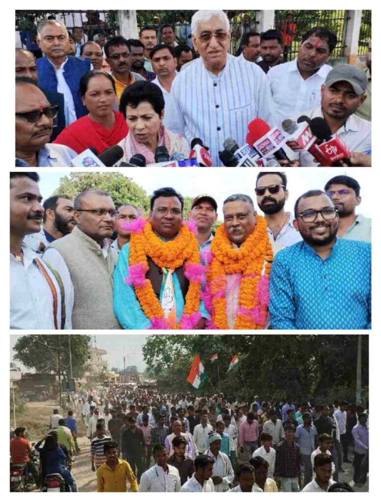 दरअसल आज प्रदेश कांग्रेस प्रभारी कुमारी शैलजा व सह प्रभारी चंदन यादव व डिप्टी सीएम टीएस सिंहदेव बलरामपुर पहुँचे..उन्होंने रामानुजगंज विधानसभा सीट से कांग्रेस प्रत्याशी अजय तिर्की व सामरी विधानसभा सीट से कांग्रेस प्रत्याशी विजय पैंकरा के नामांकन दाखिले के कार्यक्रम में शामिल हुए..इस दौरान कांग्रेस के रामानुजगंज व सामरी विधानसभा सीट से मौजूदा विधायक नदारद रहे..यही नही कांग्रेस ने रैली निकालकर शक्ति प्रदर्शन किया।